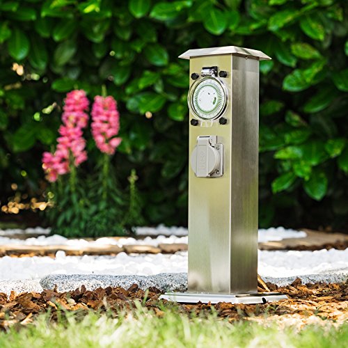 Presa quadrata da esterno: presa da giardino in acciaio inox con timer 24 ore e 2 prese con coperchio incernierato per installazione permanente, presa multipla per uso esterno, IP44
