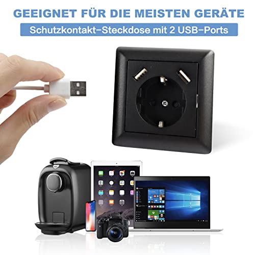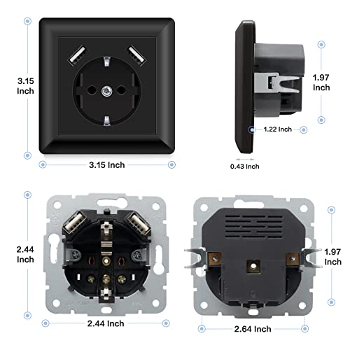 Presa USB max 5V 3.4A presa Schuko USB Embedded System 55 Solid Black Glossy Presa a muro solo 32mm (Nero 3.4A)