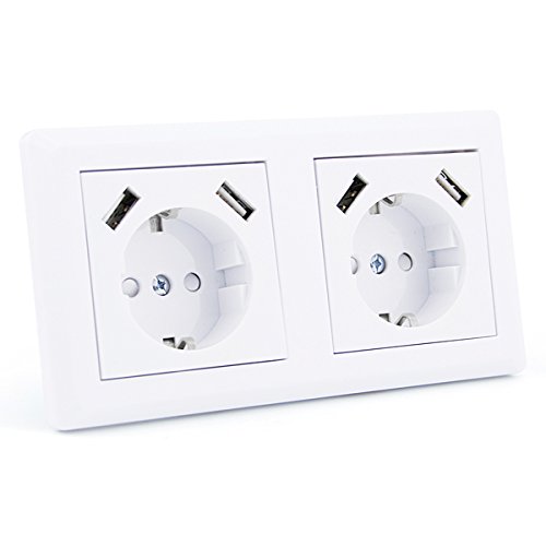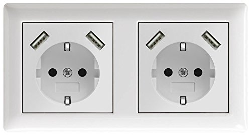 Presa Schuko da incasso, 230 V, con contatto di protezione, 2 x caricatori USB adatti per Gira System 55, colore bianco puro lucido certificato TÜV, Bianco 1.00W, 230.00V