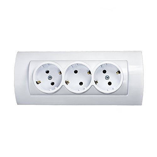 Prese Schucko a 3 vani per installazione superiore piatta, presa Schuko, colore bianco