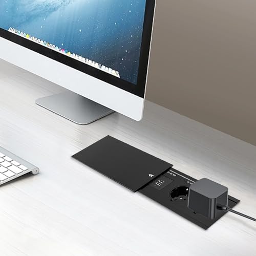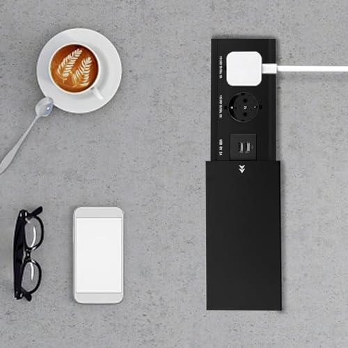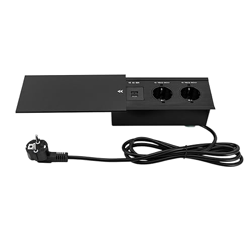 Presa a scomparsa in lega di alluminio, presa da scrivania 2200 W, presa da tavolo, 2 scomparti, lunghezza del cavo di alimentazione 1,8 m, presa da tavolo 110 - 240 V con protezione per ufficio di