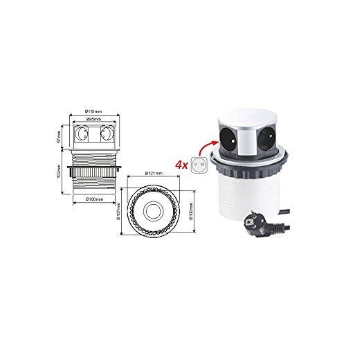 Presa a scomparsa per cucina, ufficio, blocco di 4 prese Schuko con cavo 1,4 m, pratico posizionamento a 360° degli slot sul piano di lavoro e scrivania.