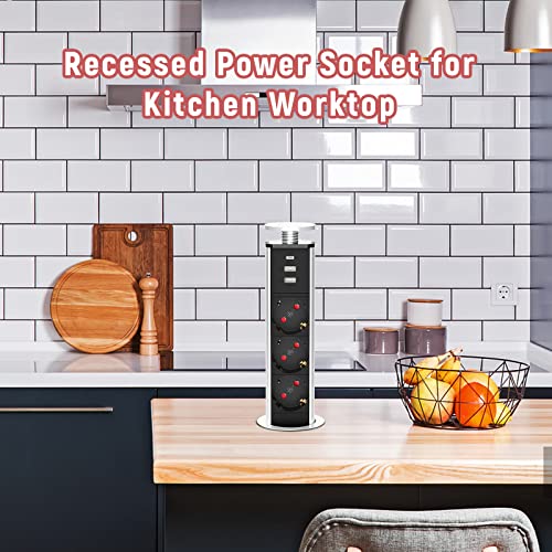 Presa a scomparsa, Ohuo Multipresa da scrivania a scomparsa con USB C 20W, 3 Presa a scomparsa top cucina, cavo 2m