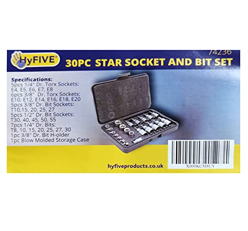 Presa a stella e set di bit 30pc maschio e femmina Prese Torx E & T bit Socket