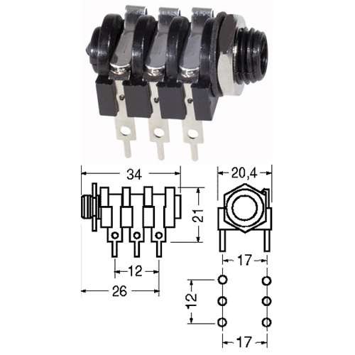 Presa jack 6.3 stereo c.s. da pannello contatti n.c.