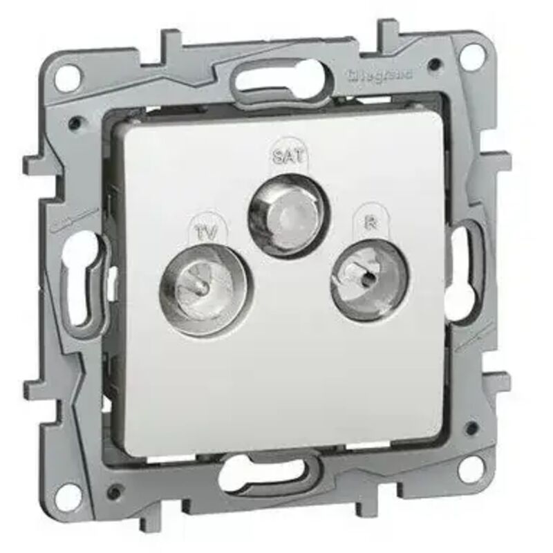 Prendi TV/RADIO/SAT NILOE UNICA bianco. Basi televisive - Connettore TV maschio e R femmina da 9,5 mm, Sat F - cavi consigliati da 17 V (attenuazione di 17 dB su 100 m) - Distribuzione dei segnali TV e radio di tutti gli operatori secondo le esigenze del codice di costruzione e urbanistica R 111-14 che regola gli edifici collettivi - Installazione a stella secondo le esigenze della norma NF C 15-100 e della guida UTE C 90483 Base TV-R-SAT - Base a bassa attenuazione inferiore a 1,5 dB adatta per la ricezione terrestre TNT, satellitare o tramite rete cablata - Ritorno vocale sul connettore TV - TV: 5-68 e 120-862 MHz/FM: 87,5 -108 MHz/Sat: 950 2400 MHz - Base TV-R-SAT - Stella schermata. Niloé - Basi televisive - Meccanismo con cornice e supporto - Da equipaggiare con placche decorative - Montaggio dei meccanismi a incasso o a superficie - Fissaggio con vite o griffe con accessori griffe ref. 6 650 99 - Fornito con protezione.