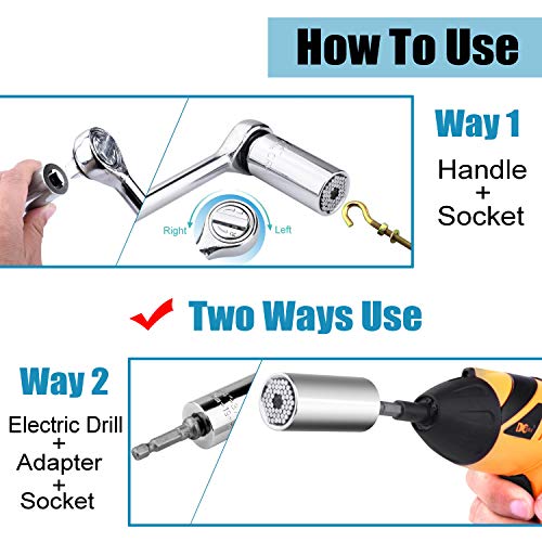 【What you get】3/8” Power drill adapter turns any drill and a universal socket adapter.
