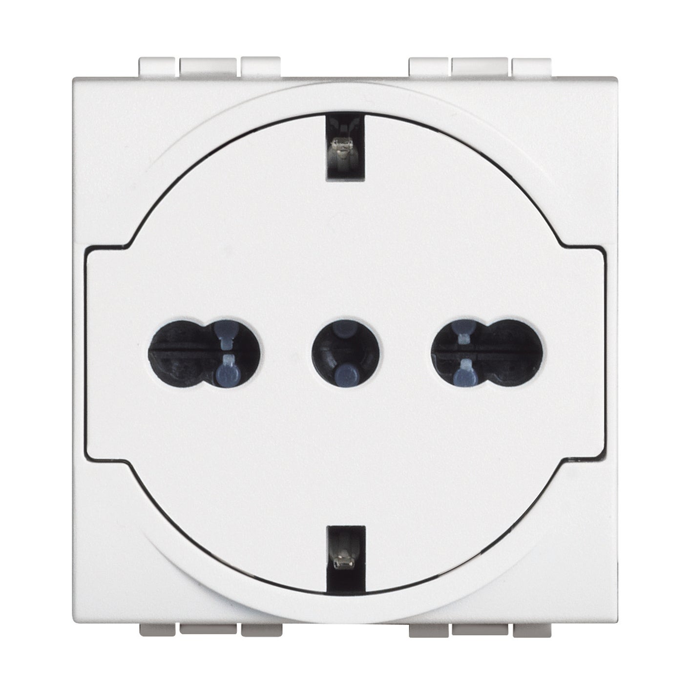 2 moduli. Adatta per collegare spine tedesche, spine 10a e spine 16a. Minuti, se nessuno transita davanti al sensore. Superficie facilmente pulibile grazie alla geometria planare del punto luce
