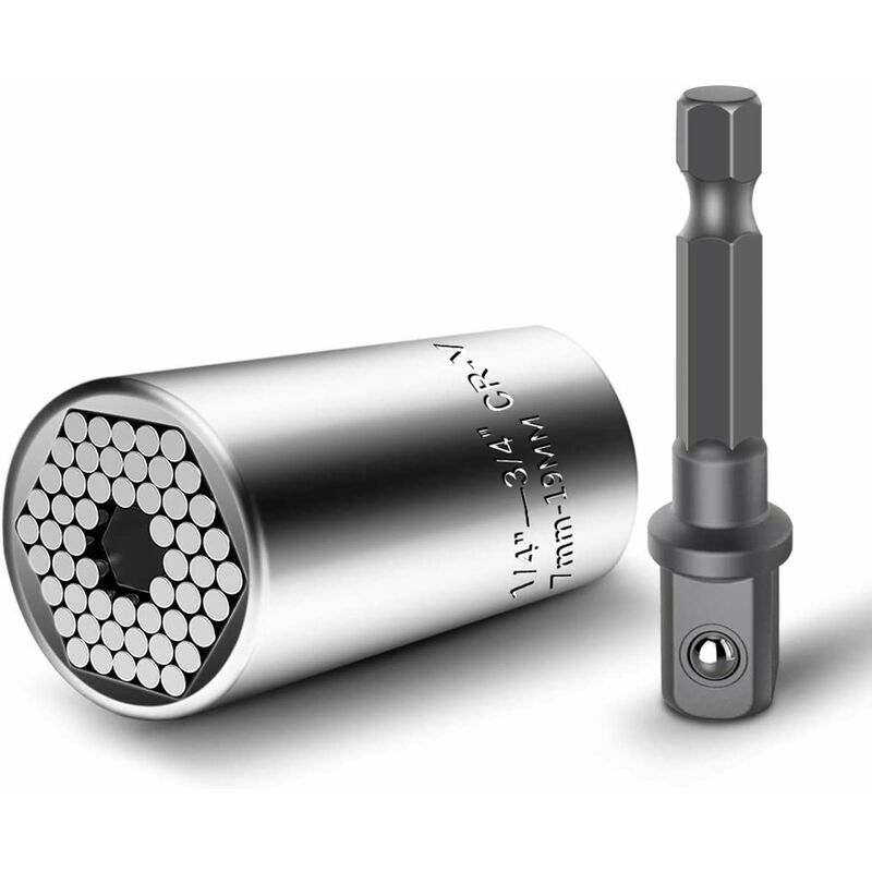 Acciaio al cromo-vanadio?La nostra chiave a bussola universale è realizzata in acciaio al cromo-molibdeno di elevata durezza, affidabilità e durata per applicazioni efficienti e pratiche. ?Design sofisticato?: Principio di progettazione a nido d'ape: il più robusto in assoluto. Puoi risparmiare tempo scegliendo la dimensione del bullone/dado in base allo spazio. Bello e squisito: lucidatura fine della superficie della chiave a bussola, elettroforesi, rettifica pneumatica, impugnatura per elettroforesi, bella, nessuna ruggine ?Multifunzione?: La presa universale è adatta per dadi da 7-19 mm. La presa universale può essere utilizzata per rimuovere viti, ganci rotanti e altri elementi di fissaggio, il rubinetto rotto può essere rimosso e la manopola può essere serrata. Attenzione: la presa universale può essere rimossa dalla forma di quadrato, esagonale, dado ad alette, ecc. Se i bulloni arrugginiti sono troppo stretti, usarli con un trapano elettrico. ?Ampia gamma di applicazioni?: la
