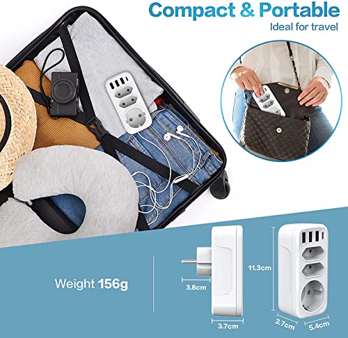 Presa USB, 7 in 1 USB/AC Presa Multipla Estensione 1 Schuko, 2 prese EU, 3 Porte USB e 1 Porta di Tipo C, Idea Salvaspazio per Viaggi, Casa, Ufficio