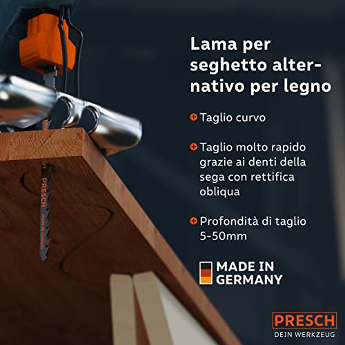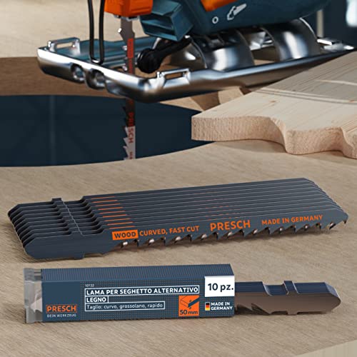 Presch Lame seghetto alternativo Legno 10 pz. - Taglio curvo grossolano e rapido (5-50mm) - Codolo a T di lunga durata, lame per tutti i seghetti alternativi - Lame per pannelli di truciolato