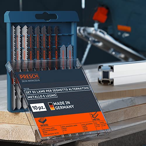 Presch Set di lame seghetto alternativo Metallo e Legno 10 pz. - Un unico set di lame per seghetto alternativo per tutte le applicazioni - Lame per seghetto alternativo durature con codolo a T