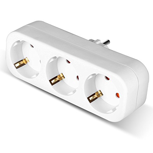 3 prese adattatore, soyion presa Schuko 3 spina Multi Spina Adattatore Spina con contatto di terra più prese di sicurezza Approvato, Weiß&Rot-1
