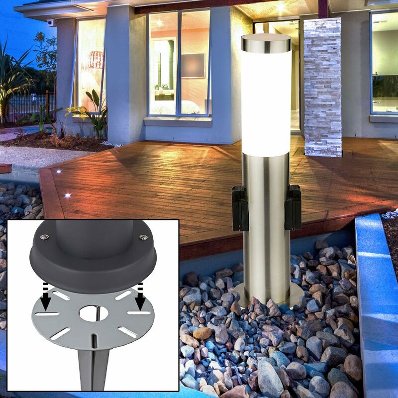 Descrizione Lampada da terra in acciaio inox per uso esterno. Con queste lampade da terra puoi, ad esempio, creare un percorso luminoso attraverso il tuo giardino o semplicemente impostare aree appropriate in scene. Non ci sono limiti alle tue idee, perché grazie alla classe di protezione IP44, questa elegante lampada da terra sfida anche le peggiori condizioni atmosferiche ed è predestinata all'uso esterno. Alloggiamento in acciaio inossidabile di alta qualità Di sicuro godrai di un divertimento a lungo termine. Attraverso le due prese integrate, questa lampada dona non solo luce, ma anche elettricità per alimentare attrezzi da giardino come B. per azionare i tosaerba. Rispetto alle normali luci, i faretti a LED consumano solo una minima quantità di elettricità e sono in il Consumo anche con lampade a risparmio energetico. Questo ti salva l'ambiente e il tuo portafoglio. Una lampada LED di alta qualità a risparmio energetico è inclusa! La fornitura include una lampada da esterno con