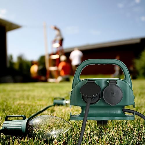 4 prese da giardino IP44 con maniglia e picchetto, presa esterna impermeabile con cavo in gomma H07RN-F (5 m, verde).