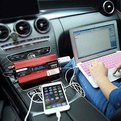 Prese per inverter Convertitore di tensione da 12/24 V CC a 220 V con display LCD per adattatore per caricabatteria per auto, con USB per laptop, tablet, smartphone, fotocamera e altro,12V-1200W