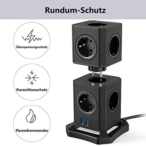 Protezione completa: il cavo di prolunga multifunzionale dispone di una protezione da sovratensione integrata con un'efficienza energetica di 1500 joule, che protegge i vostri elettrodomestici e dispositivi da fulmini. Inoltre, possono essere prevenuti sovraccarico, surriscaldamento, sovratensione e sovracorrente.