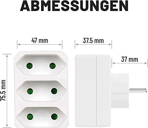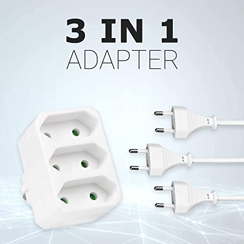 3 prese multiple, 4000 W, per ufficio, casa, viaggi, bianco