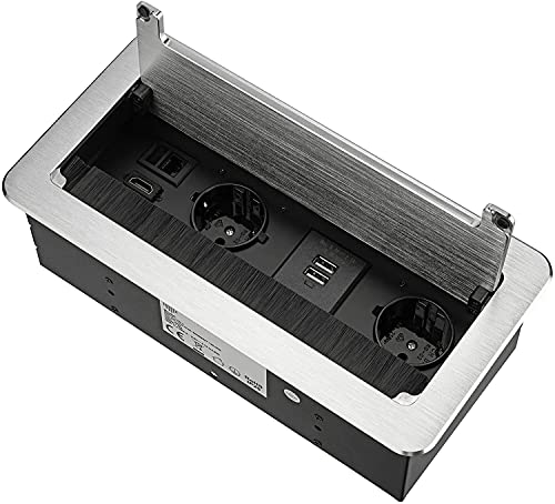 2 prese a scomparsa + HDMI + USB + LAN Internet - alluminio pressofuso - lembo morbido - argento