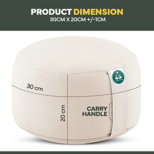 Present Mind Cuscino Meditazione Extra Alto (Altezza 20 cm) - Colore: Beige Chiaro - Cuscino Yoga Alto/Cuscino da Meditazione - Prodotto UE - Fodera Lavabile - Cuscino Yoga Meditazione Naturale
