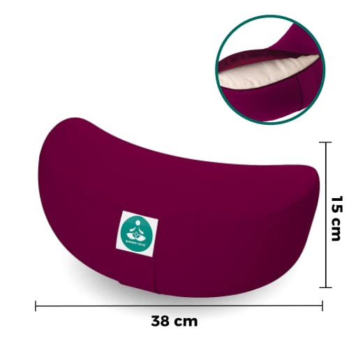 Present Mind Cuscino Meditazione a Mezzaluna (Altezza 15 cm) - Colore: Borgogna - Cuscino Zafu Yoga Alto/Cuscino Yoga - Prodotto nell'UE - Fodera Lavabile - Cuscino Yoga Meditazione Naturale