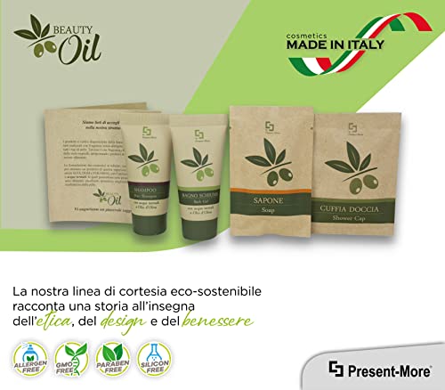 Present-More Set cortesia Beauty Oil - Linea cortesia 20 ospiti per Alberghi, B&B e Hotel | Set cortesia privo di allergeni con fragranza Tahitian