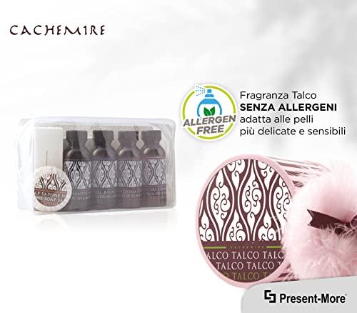 Present-More Set cortesia Cachemire - Welcome Gift Linea cortesia per Alberghi, B&B e Hotel | Set cortesia privo di allergeni con fragranza Talco (Set 24 ospiti)