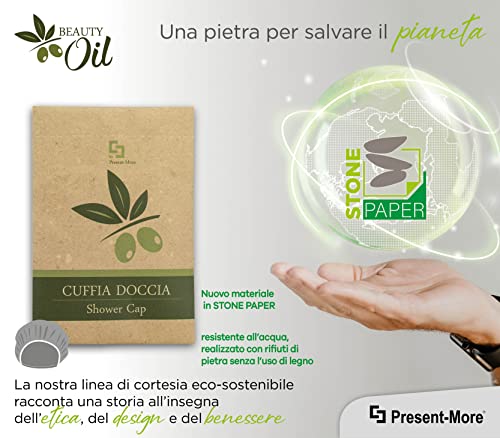 Present-More Cuffia doccia Beauty Oil - Cuffia doccia monouso 250 pezzi per Alberghi, B&B e Hotel | Cuffia doccia monouso imbustata singolarmente e confezionata in materiale Stone Paper