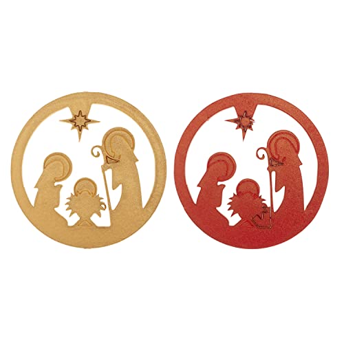 Set 2 Presepe di Natale in Zucchero - 2D con Maria, Giuseppe e Gesù - Oro e Rosso - decorazione natalizia ideale come decoro torte, dolci, panettoni e pandori.