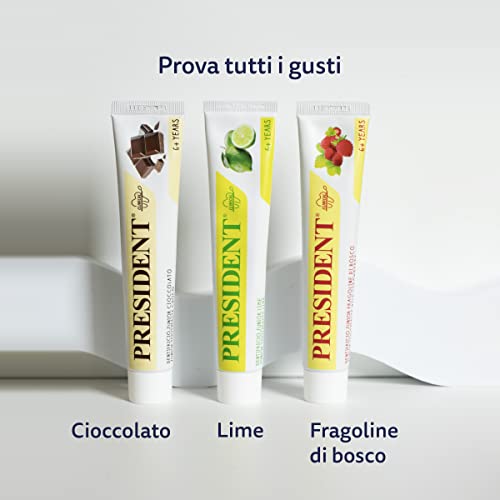 President DENTIFRICIO JUNIOR 6+ per bambini dai sei anni in su. Gusto Fragoline di bosco, anticarie, protegge gengive e smalto dei denti. Senza parabeni, SLS, allergeni e PEG - RDA 30-50 ml