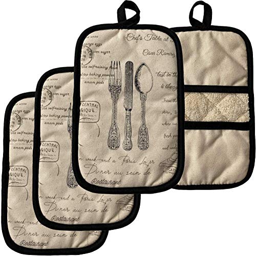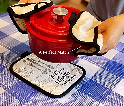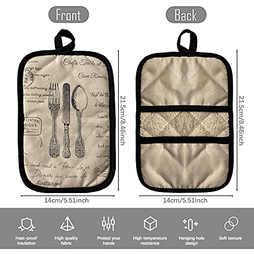 Design retrò adatto a qualsiasi cucina. Le presine hanno una dimensione ottimale di circa 14 x 21,5 cm