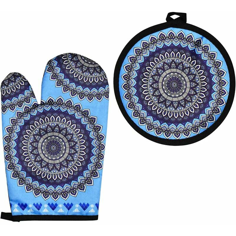 un tappetino 17 * 17. Quantità: 2 Colore: blu Modello mandala Dimensioni: guanti 28 * 17 tappetino 17 * 17 Fodera: fodera in cotone Può essere appeso: Sì