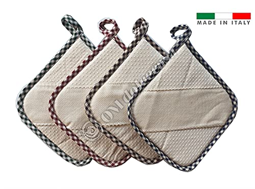 PRESINE da Cucina QUADRATE Set da 4 Pezzi 4 Colori Verde Bordeaux Marrone Blu con Inserto in Tela Aida 100% Cotone Prodotto Italiano
