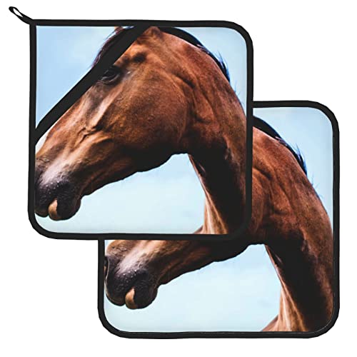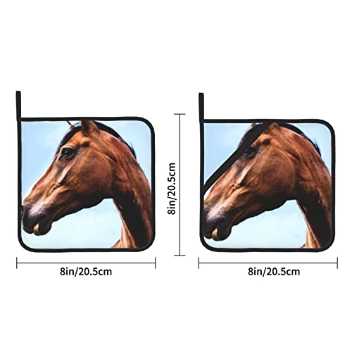 2 pezzi Super Value: con cavallo pony stampato - Super valore per 2 presine, tra cui 2 presine (20,5 x 20,5 cm), ideale per contenere pentole calde, padelle, piatti, ciotole, vassoi, ecc. Per goderti la tua cucina, cuocere, grigliare in cucina. Prendilo e goditi la meravigliosa vita in cucina