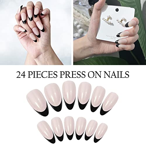Press On Nails Coffin 24 Pezzi, Francese Nero Unghie Finte Bara Unghie Finte Lunghe Unghie Finte,Unghie Finte per unghie per Donne e Ragazze.
