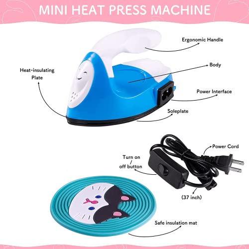 Mini pressa di calore a temperatura ferro elettrico con base di ricarica accessori per progetti in vinile trasferimento, portatile e facile da maneggiare per vestiti fai da te (blu)