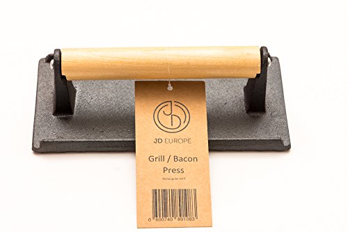 Pressa in ghisa per grill e bacon, forma rettangolare, da 1 kg
