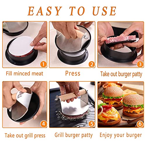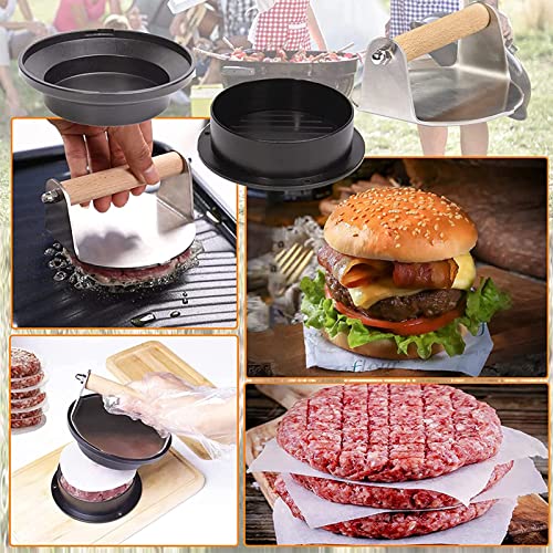 Pressa Hamburger, Pressa per Grill in Acciaio Inossidabile con Stampo Hamburger, Stampini per Tortini Antiaderenti, Kit di Stampo per Hamburger Hamburger ripieno Burger Maker per BBQ, Grill e Cucina