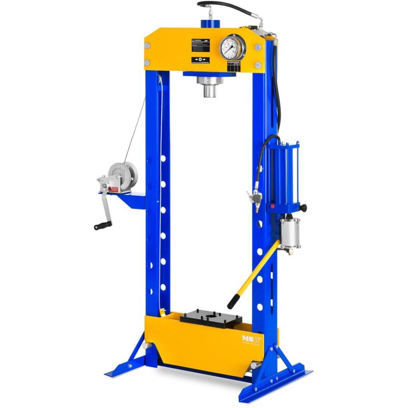 Di marca MSW ✅ Modello: MSW-WP-30T-P ✅ Articolo: 10060302 ⬇️ Caratteristiche principali ⬇️ Dettagli tecnici Altezza di lavoro [mm] 250 - 1125 (8 livelli di altezza a intervalli di 125 mm) Dimensioni del tavolo [mm] Larghezza: 530 Intervallo di regolazione orizzontale [mm] 200 Manuale Sì Corsa del pistone 160 mm Pressione dell'aria 8.5 Bar Pressione massima 666 Bar Forza di pressione max. 30000 kg ⬇️ Descrizione del prodotto Che il vostro obiettivo sia pressare e piegare metalli o montare ingranaggi, rondelle e boccole filettate, con la pressa idropneumatica WP-30T-P della MSW tutto questo è un gioco da ragazzi. Questa pressa idraulica con manometro integrato ha una pressione massima di 30 tonnellate ed è pertanto adatta sia all'uso in officina che nell'ambito dell'ingegneria meccanica. La pressa idropneumatica WP-10T-P offre un confortevole piano da lavoro con una larghezza di 460 mm. Per poter lavorare sempre nella giusta posizione è possibile impostare l'altezza su otto