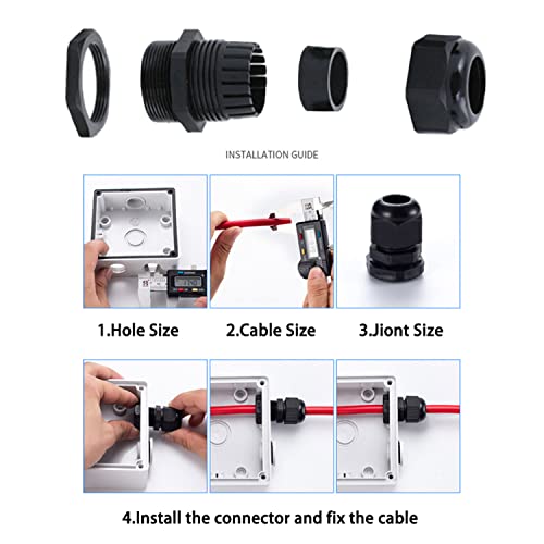 ⚙ Modelli Multipli: Esistono tre modelli di pressacavi: PG13,5 può essere collegato a cavi da 6-12 mm, PG9 può essere collegato a cavi da 4-8 mm, PG7 può essere collegato a cavi da 3-6,5 mm, dieci di ciascuno modello, per soddisfare diverse esigenze!