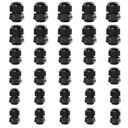 Pressacavo Impermeabile, DEANKEJI 30 Pezzi Connettore Pressacavo Regolabile, Con tre Modelli (PG13.5, PG9, PG7) Pressacavi, Può Essere Utilizzato per la Connessione via Cavo Interna ed Esterna