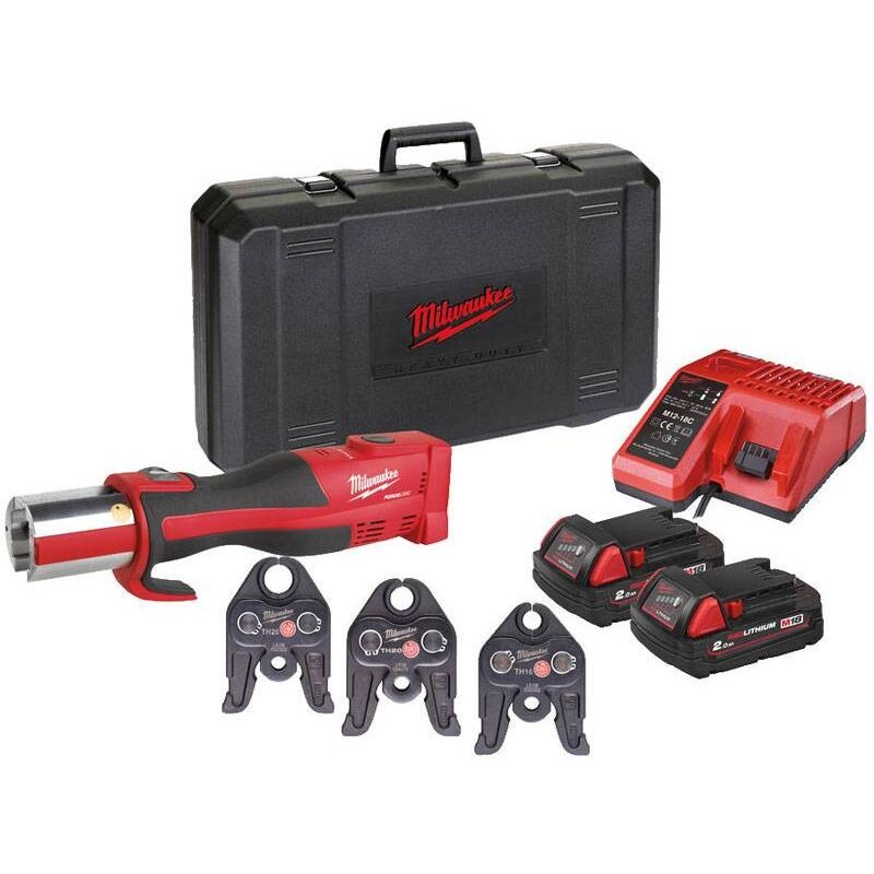 Kit Pressatrice idraulica Milwaukee Force Logic M18 modello M18 BLHPT-202C TH-SET2 composto da: 1 Pressatrice Brushless Force Logic M18 2 Batterie M18 2.0 AH 1 Caricabatterie M12-18 C 1 Ganascia per pressatura Jaw J18 TH16 1 Ganascia per pressatura Jaw J18 TH20 1 Ganascia per pressatura Jaw J18 TH26 1 Valigetta Specifiche dei componenti nel Kit: Pressatrice Brushless Force Logic: Motore Brushless: forza di pressatura 32 kN, veloce fino al 10% in più, autonomia maggiore del 20% Indicatore pressatura FORCE LOGIC: fornisce una conferma visiva del buon esito dell'applicazione Utilizzabile con una mano sola in applicazioni sopra-testa o in spazi ristretti Impugnatura in linea e dimensioni compatte Elettronica intelligente: l'utensile non esegue la pressatura se non vi è sufficiente carica della batteria Affidabilità FORCE LOGIC: intervallo di manutenzione di 3 anni (cicli illimitati) Consente di pressare tubi in rame fino a 108 mm e tubi compositi fino a 75 (prof. G) e 63 (prof. TH)