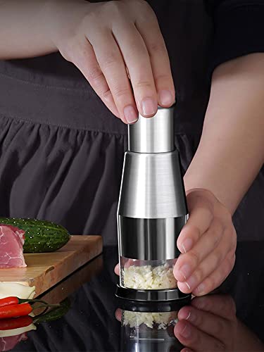 N/A Pressed Aglio Chopper in Acciaio Inox Manuale Aglio Masher Push Tipo Aglio Crusher Lavoro Risparmio Cucina Cibo Chopper Gadget per Ginger Chili Cipolla Insalata