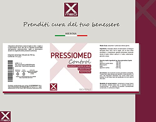 XMED Pressiomed Control, Integratore Alimentare a base di Aglio, Olio e Biancospino, 180 perle