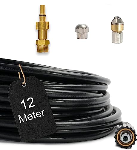 Tubo ad alta pressione da 3 a 100 metri - per idropulitrice - adatto per Black & Decker - per scarico di blocchi e pulizia di scarichi tubo di pulizia (12 metri)