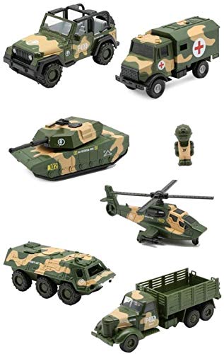 I sei pezzi modello dell'automobile del giocattolo della lega militare, la parte anteriore è realizzato in lega di materiale, e il corpo macchina è realizzato in materiale plastico, che ha una funzione di rimbalzo.