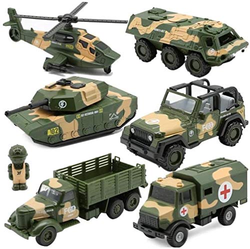 HXR Six in One Lega pressofusa Elicottero del Giocattolo del Metallo Car Set Ambulanza Armored Car Serbatoio simulato Modello Veicolo Militare Gift Collection Cognitive Veicoli Giocattolo