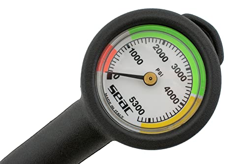 SEAC Pressure Gauge, Manometro per Immersioni Subacquee, Scala quadrante 0-5000 PSI Unisex Adulto, Nero