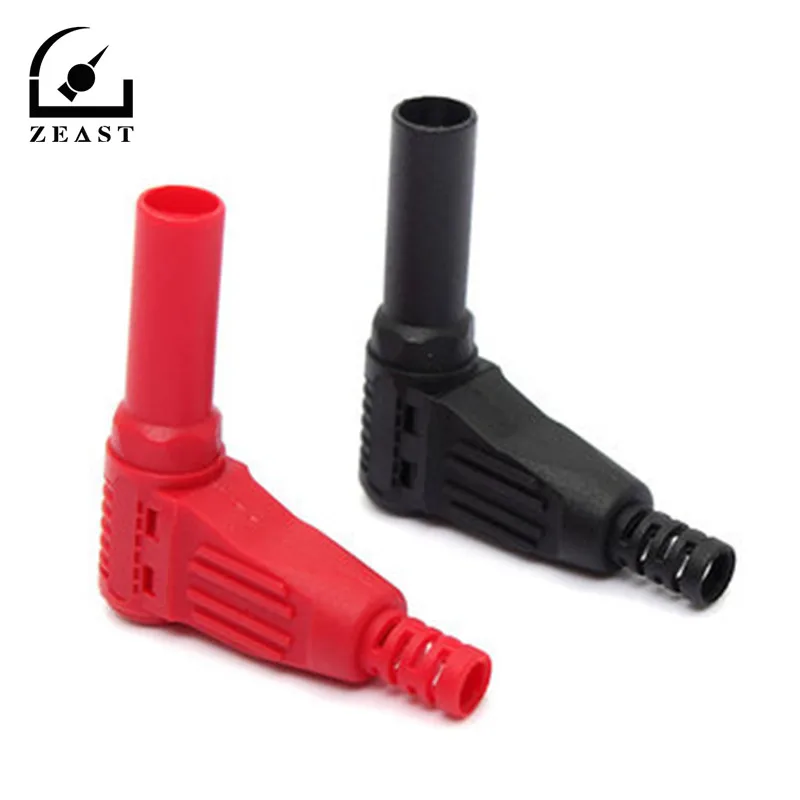 2PCS High Pressure 4mm Male Right Angle Insulation Wire Solder Type DIY Banana Plug Connector Red/Black
