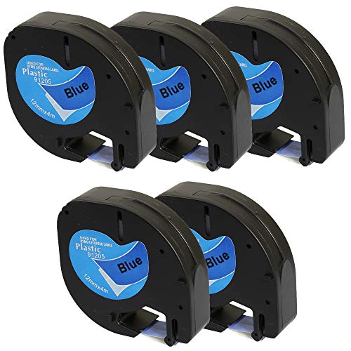 Prestige Cartridge Plastica Nastro, Sostituisce 91205/S0721650, 12mm x 4m, 5 Pezzi, Nero su Blu